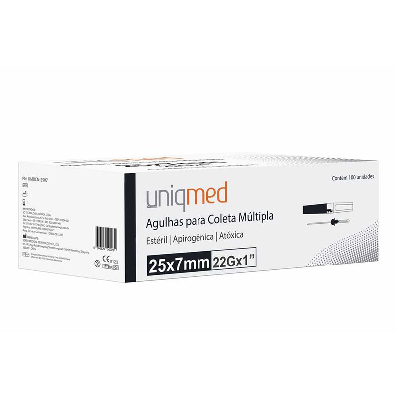 Agulha para coleta múltipla de Sangue a Vácuo 0,7x25mm 22Gx1 c/100 Uniqmed