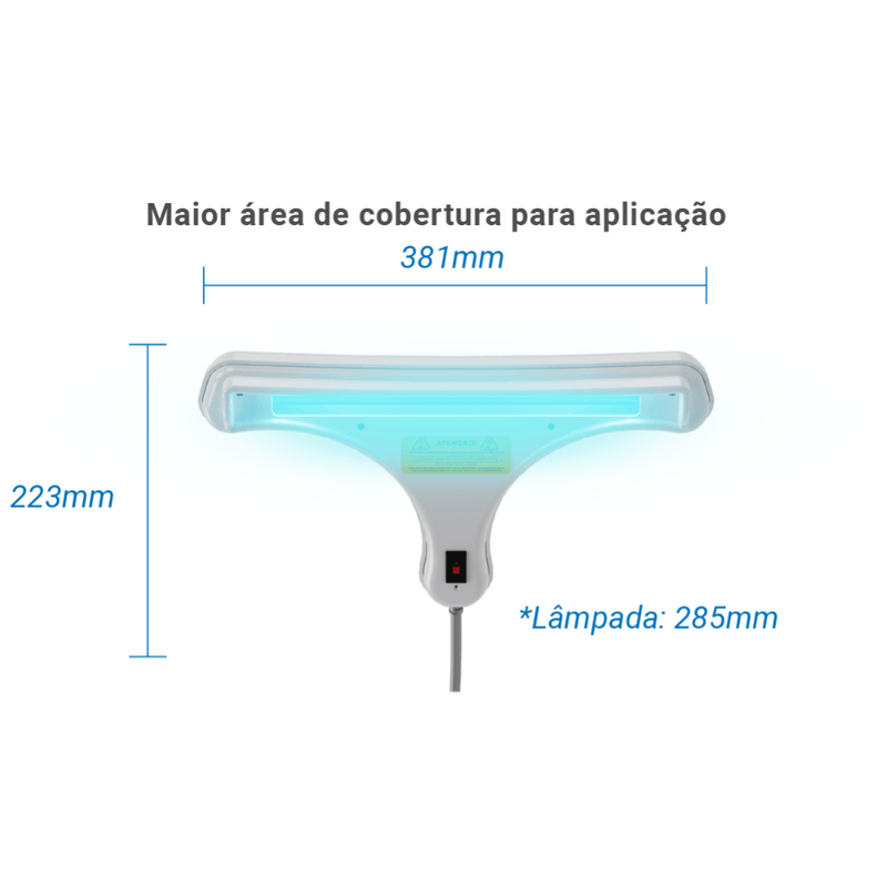 Único no mercado com sistema de segurança, evita emissão de UV aos olhos;
