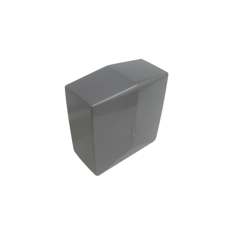 Dispenser plástico de parede para papel toalha interfolhas.