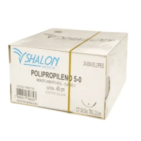 A sutura acompanha uma agulha cirúrgica cilíndrica em aço inox