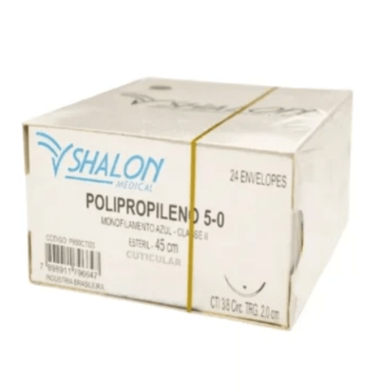 O fio de sutura de polipropileno azul SHALON é estéril e não absorvível, de origem sintética, fabricados a partir da extrusão do polímero de polipropileno.