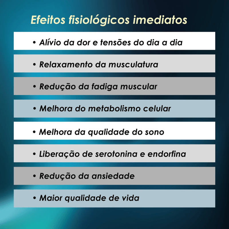 Sua utilização estimula terminações nervosas, vasos sanguíneos e linfáticos, além de promover o relaxamento muscular.