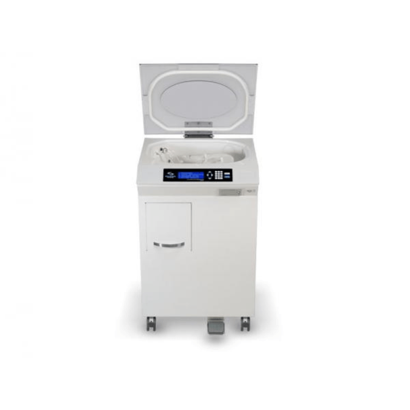 O equipamento conta com dosagem automática de detergente e desinfetante, tampa com acionamento elétrico e sistema de detecção de vazamentos integrado.