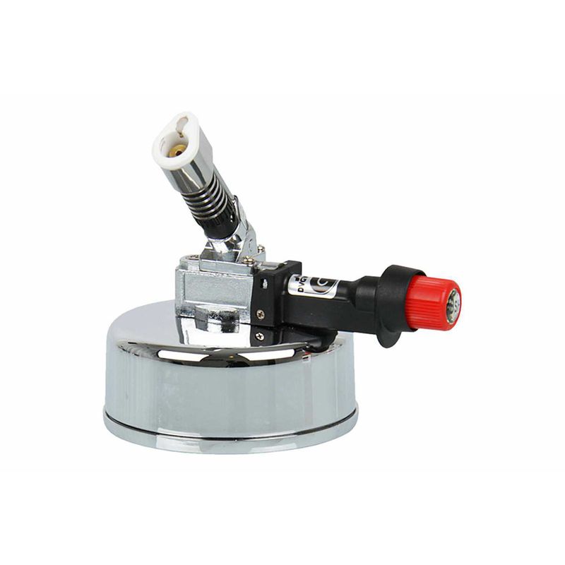 Para acender o Mini Bunsen, o anel regulador situado logo abaixo do orifício da chama, deve ser posicionado liberando a passagem de O² entre os dois orifícios do anel;