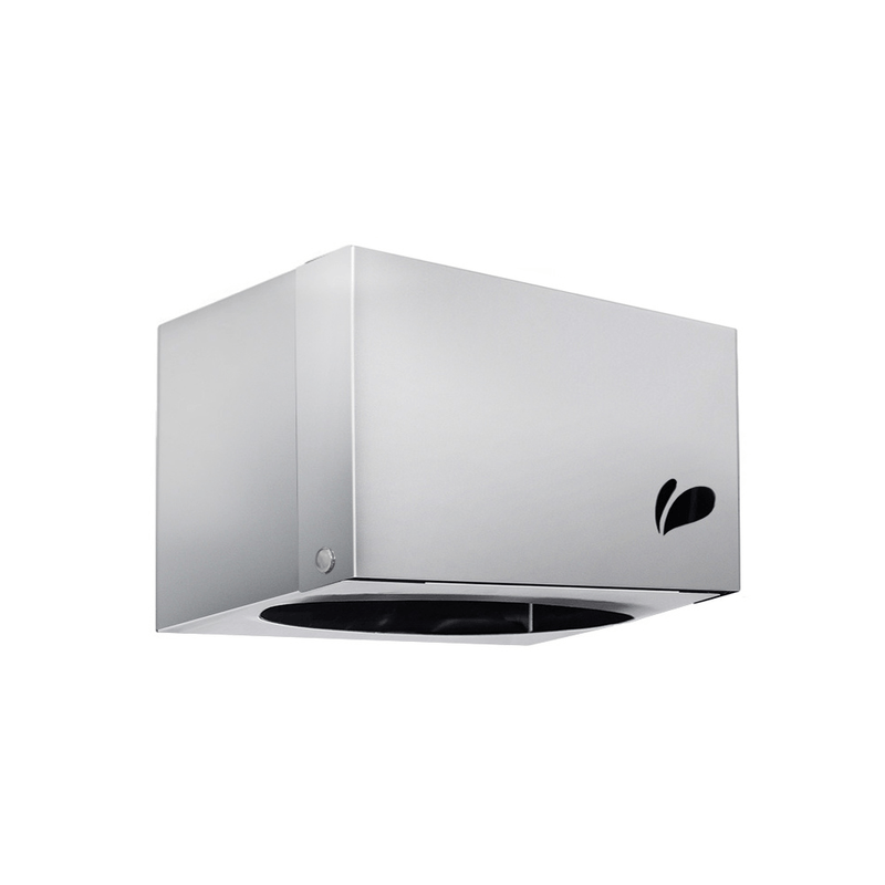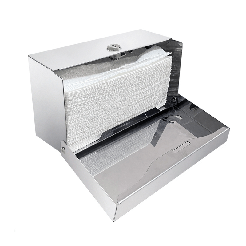 Mini dispenser em aço inox para papel toalha interfolhado.