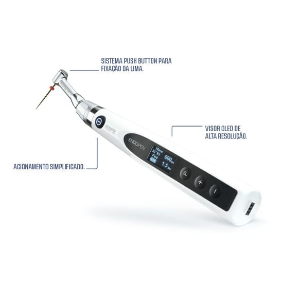 O motor endodôntico ENDOPEN é um equipamento versátil, tecnológico e preciso que permite uma série de combinações de técnicas de trabalho no tratamento endodôntico, com a vantagem de dispor ainda, da possibilidade de conexão com o localizador apical Finepex Link para a determinação do comprimento endodôntico de trabalho.