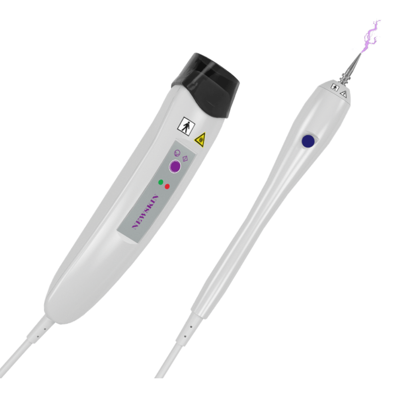 New Skin é um equipamento com certificação na INMETRO e registro ANVISA que possui a tecnologia moderna do Eletrocautério e do Jato de Plasma e conta ainda em sua plataforma a Fotobiomodulação – LED Vermelho e LED Verde – especialmente desenvolvido para a área de estética facial e corporal, no tratamento de remoção de manchas senis, melanoses solares e micropigmentação. Também é eficaz na renovação superficial da pele, tratamento de rugas e linhas de expressão, flacidez, estrias, cicatrizes atróficas e pigmentação em casos de leucodermias.