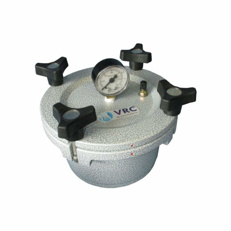 As Panelas Ortodônticas VRC não necessitam de injeção de ar comprimido para que executem seu trabalho com qualidade, pois sua estrutura interna foi projetada para que apenas com o fechamento da tampa e agua até transbordar dentro de sua cúpula o equipamento obtenha de 25 a 30 psi de pressão, ou seja, o necessário para que seus trabalhos obtenham os resultados positivos da operação;