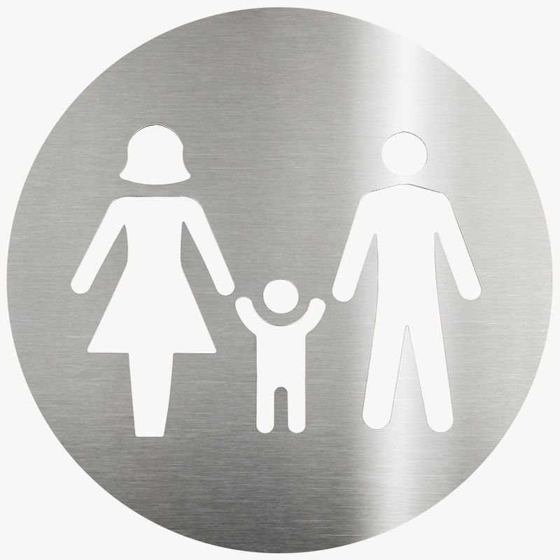 Placa de Sinalização para Banheiro Inox Escovado Biotag Biovis Família