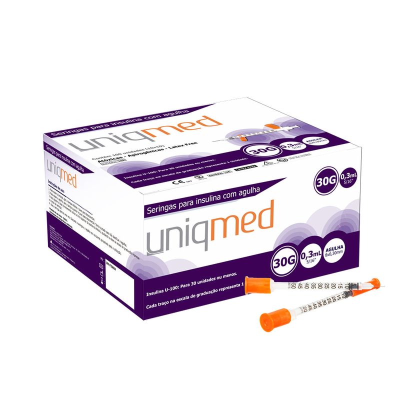 Seringa para Insulina 1mL 8mmx0,30mm 30G 5/16 x 30G c/100 Uniqmed
